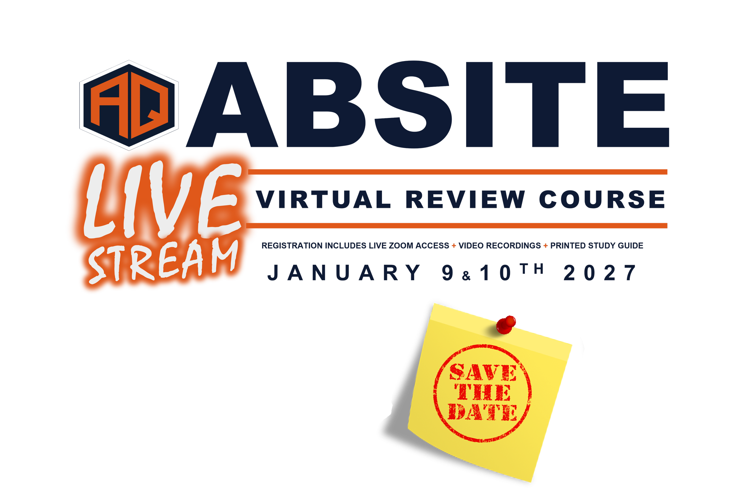ABSITE review course registration includes Zoom access to our two day live webinar, 16+ comprehensive lectures, over 250 high-yield ABSITE review questions, test-taking strategy & study tips, video recordings of all lectures, and a printed study guide of all course materials if ordered 2 weeks prior to course! All that ABSITE review for just $149!